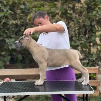 Introducing Ruddy, our charming 10 week-old male Cane Corso puppy up for adoption! Ruddy is a bundle of joy with an adventurous spirit and a heart full of love. He’s got that adorable puppy energy, always ready to play and explore, yet he also knows how to settle down for some cozy cuddle time. With his striking brindle coat and big, soulful eyes, Ruddy is not just a puppy; he’s a little heartthrob!